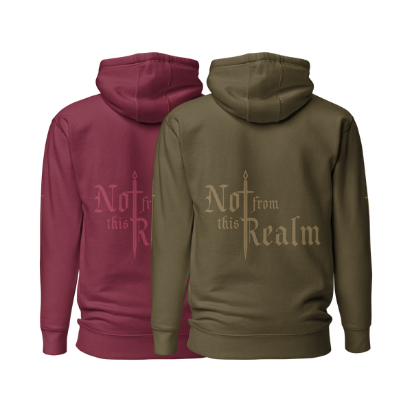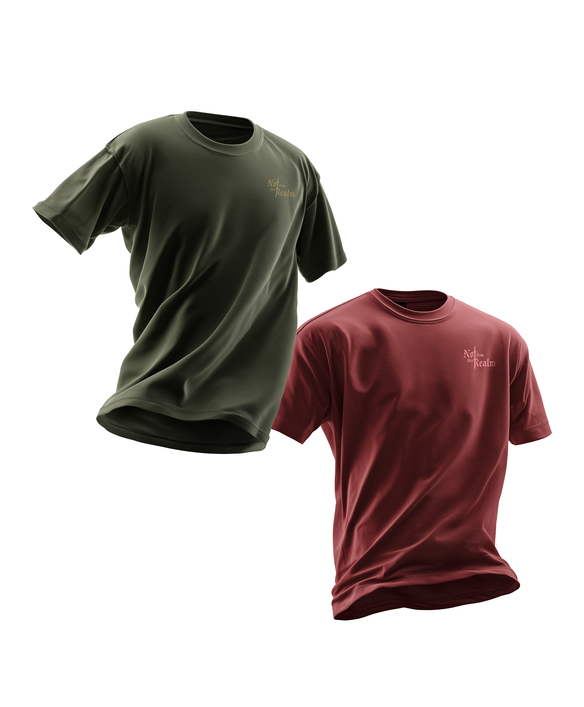 Some images are AI rendered to capture the Not From This Realm aesthetic. Product photos show the actual garment.