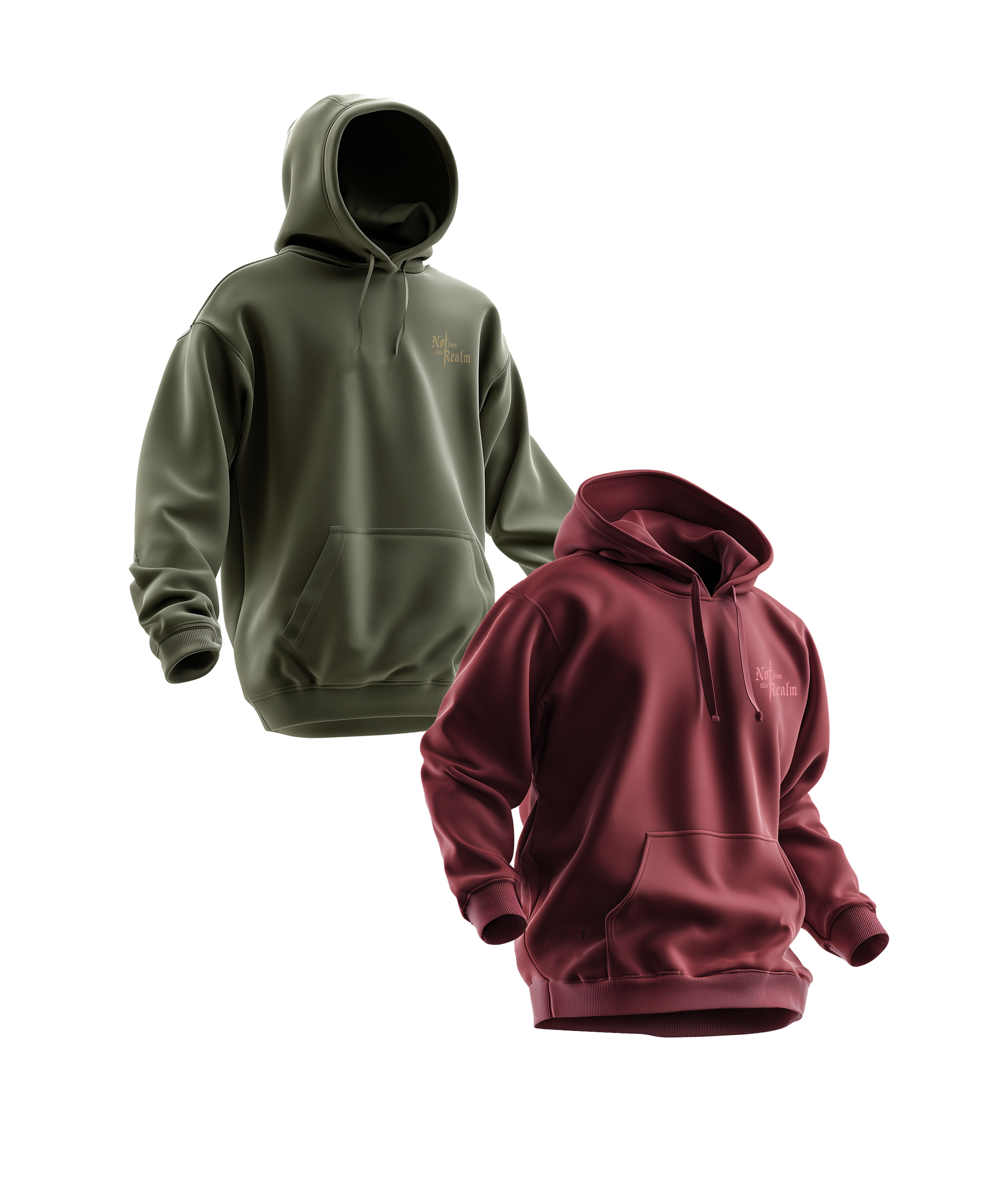 Some images are AI rendered to capture the Not From This Realm aesthetic. Product photos show the actual garment.